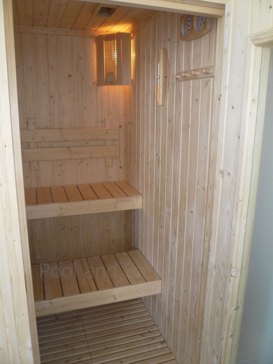 แบบบิ้วอิน (Built-in Sauna Room) ม้านั่ง 2 ระดับ