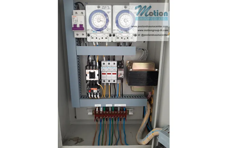 - ติดตั้งตู้ควบคุมการทำงานปั๊มน้ำ ไฟใต้น้ำ