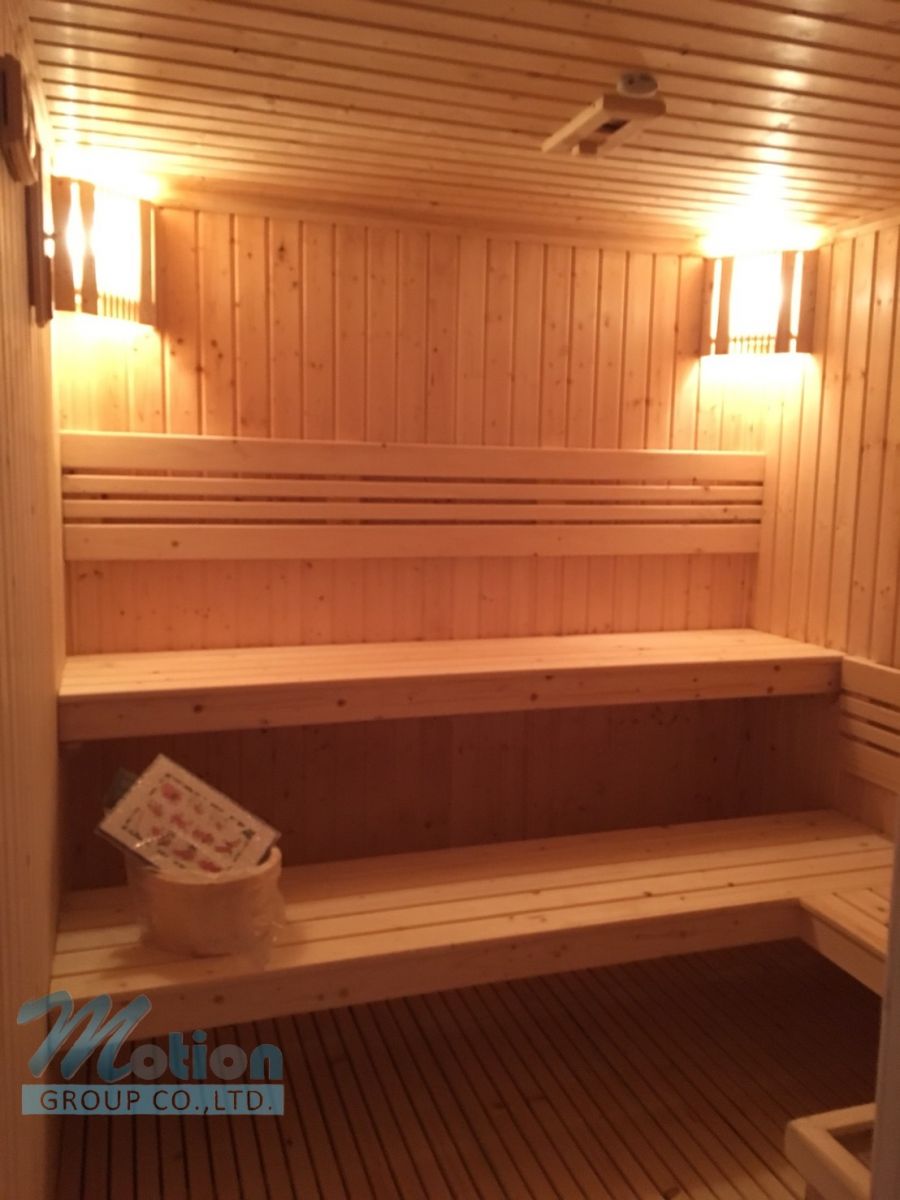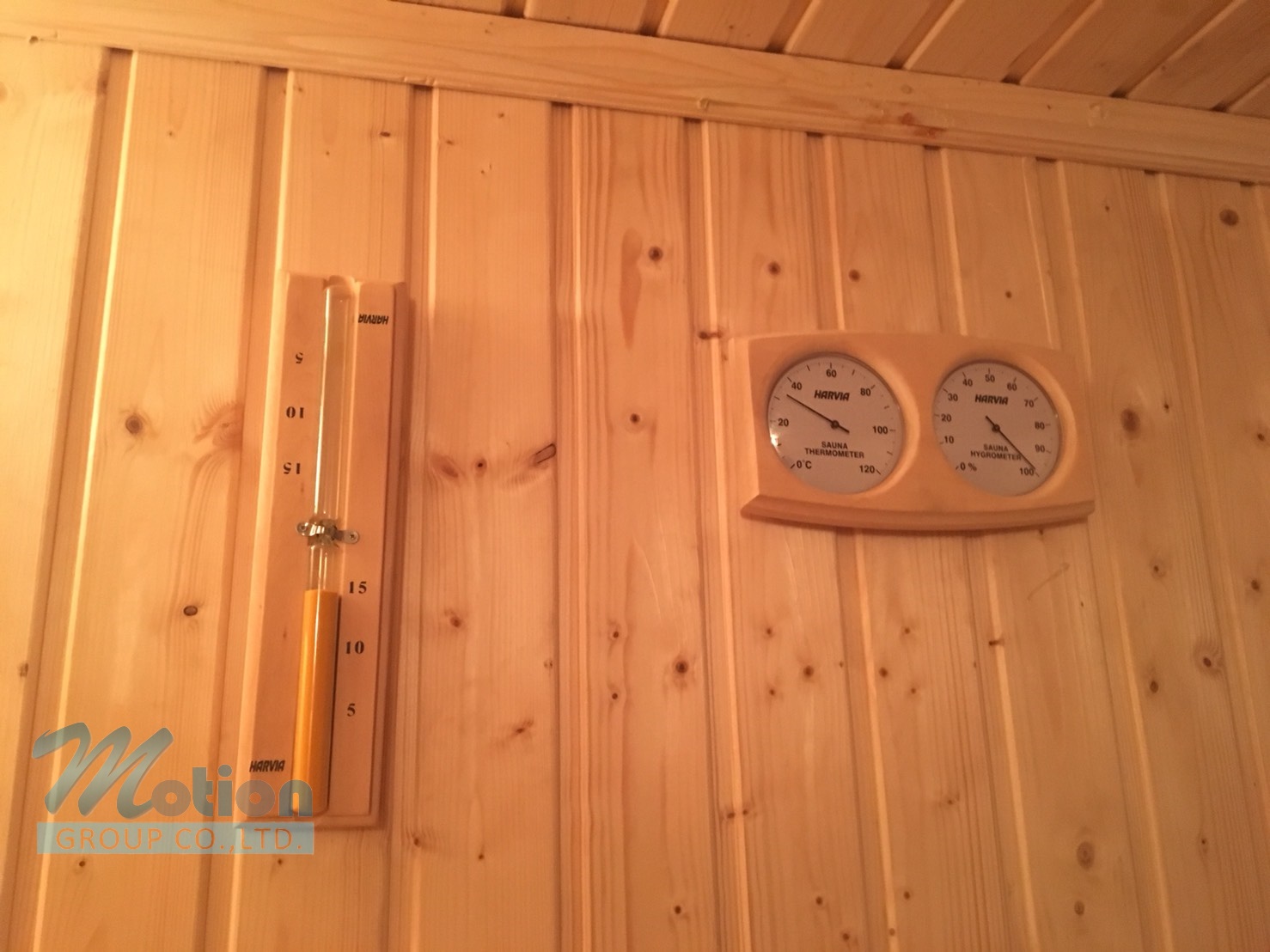 และอุปกรณ์ซาวน่ามาตรฐาน ได้แก่ ถังน้ำไม้สน กระบวยตักน้ำไม้สน เทอร์โมไฮโกรมิเตอร์ นาฬิกาทราย
