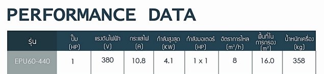 มีใบพัดแบบเรียบ ที่ช่วยให้การไหลของน้ำเป็นแบบเส้นตรงสามารถปรับความเร็วน้ำได้ตั้งแต่ 2 ถึง 210 เมตรต่อนาที สามารถกรอง และกำจัดสิ่งสกปรก ผ่านระบบหมุนเวียนน้ำโดยอัตโนมัติ (เฉพทะรุ่น EPU60-630 และ EPU120-440) มีระบบฆ่าเชื้อโรคในน้ำโดยผ่านกระบอกฟิดคลอรีน และ UV สร้างกระแสน้ำสำหรับการว่ายน้ำ สามารถปรับความแรงของกระแสได้ถึง 9 ระดับตามความต้องการ สามารถใช้ Endless Swim แทนห้องเครื่องได้เพราะ มาพร้อมระบบกรองและปั๊ม