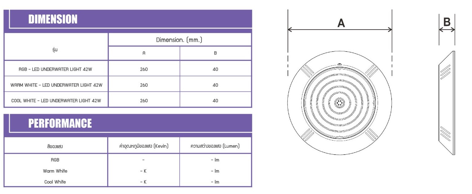 ไฟสระว่ายน้ำจากแบรนด์ JESTA รุ่น R42 ขนาด 42 วัตต์ ออกแบบมาสำหรับการติดตั้งภายในสระว่ายน้ำโดยเฉพาะ สามารถติดตั้งได้ง่ายทั้งแบบแปะหรือแขวนเข้ากับผนังสระ ให้ความสว่างชัดเจนและเพิ่มบรรยากาศให้กับสระน้ำได้อย่างสวยงาม
