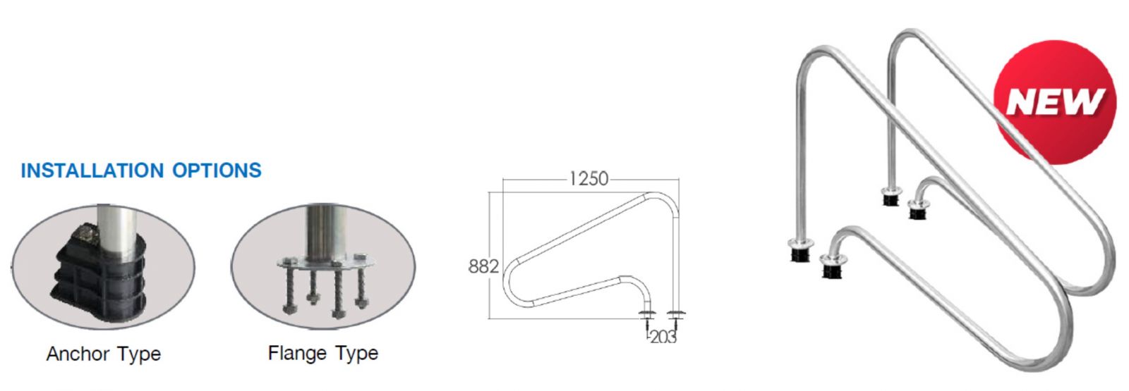 - ใช้ติดตั้งเกาะด้านข้างผนังสระ