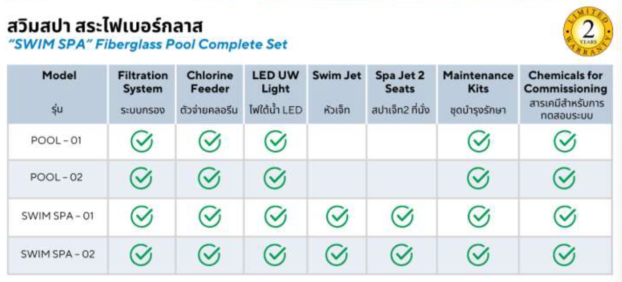 - ระบบ Counter Swim Jet พร้อมไฟ LED เปลี่ยนสี