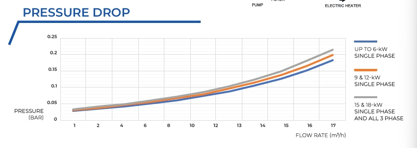FLOW REQUIREMENTS - Minimum flow: 3-kW to 6-kW, 1m³/h Minimum flow: 9-kW to 24-kW, 4m³/h Maximum flow: 17m³/h