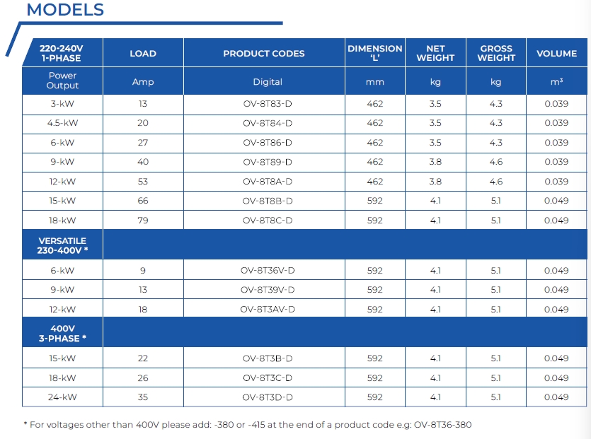 รุ่น OV-8T39V-D, Heating Capacity 9KW, 230V/400V