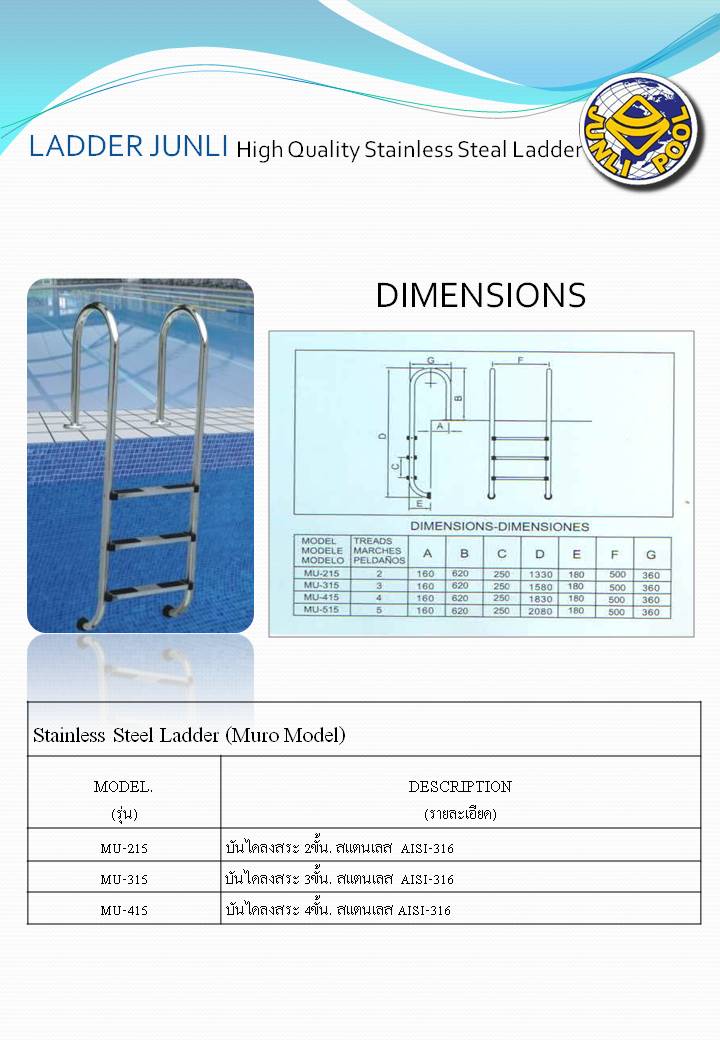 ันไดสระว่ายน้ำ Muro Model ยี่ห้อ JUNLI สแตนเลส316