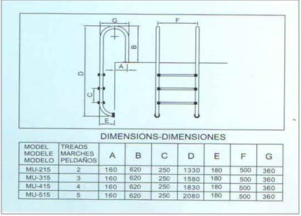 MU-215 บันไดสระ 2ชั้น สแตนเลส AISI-316