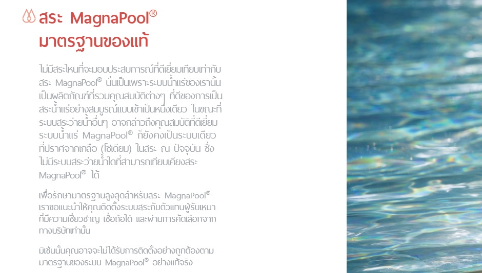 ระบบ MagnaPool® อุดมไปด้วยแร่ธาตุที่สำคัญ มอบสัมผัส