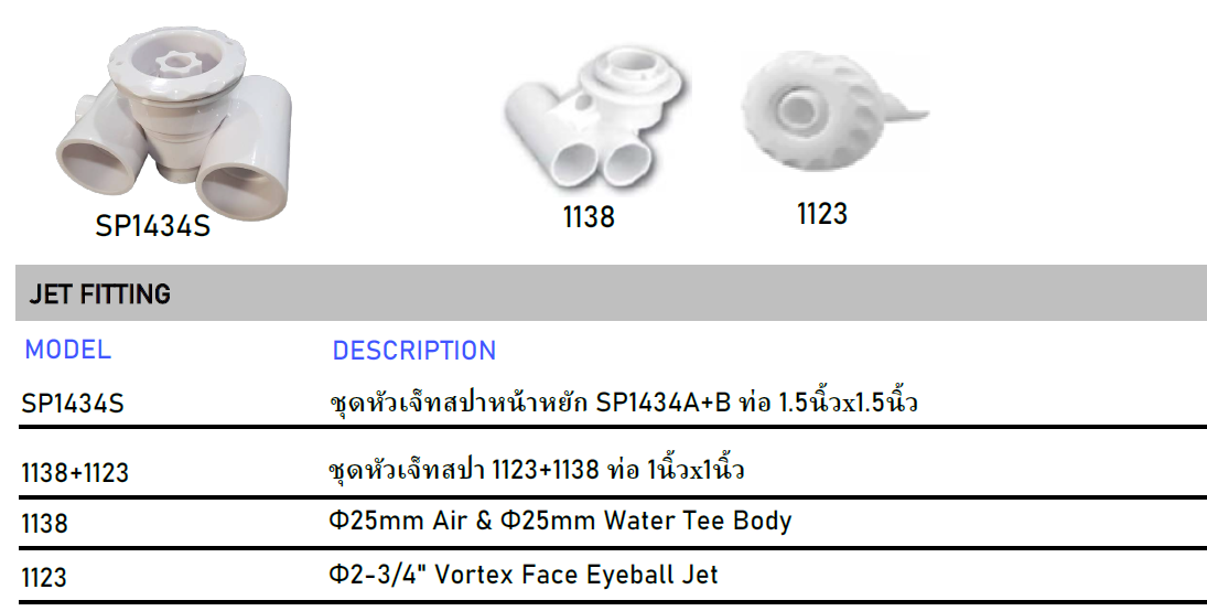 ชุดหัวเจ็ทสปาหน้าหยัก SP1434A+B ท่อ 1.5นิ้ว x 1.5นิ้ว MONA รุ่น SP1434S