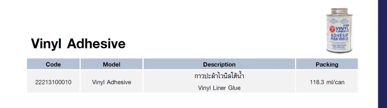 Vinyl Adhesive กาวปะผ้าไวนิลใต้น้ำ 118.3 ml/can