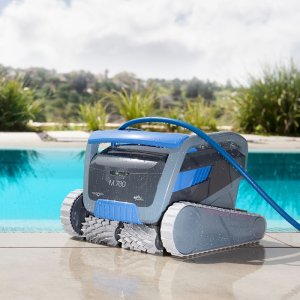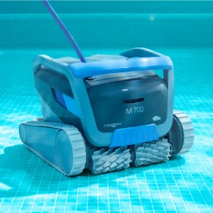 Welcome to pool cleaning on a whole new level. The Maytronics Dolphin M 700 robotic pool cleaner saves you valuable time with its simple operation and Wi-Fi® connectivity. Use the MyDolphin™ Plus mobile app to customize cleaning schedules for your convenience and your pool’s needs. The M 700 was masterfully designed to deliver incomparable scrubbing of the floor, walls, and waterline. It’s got a unique sensor that lets you know the water temperature, and a gauge that shows you 5 levels of filter status, and if the filter is clogged up.